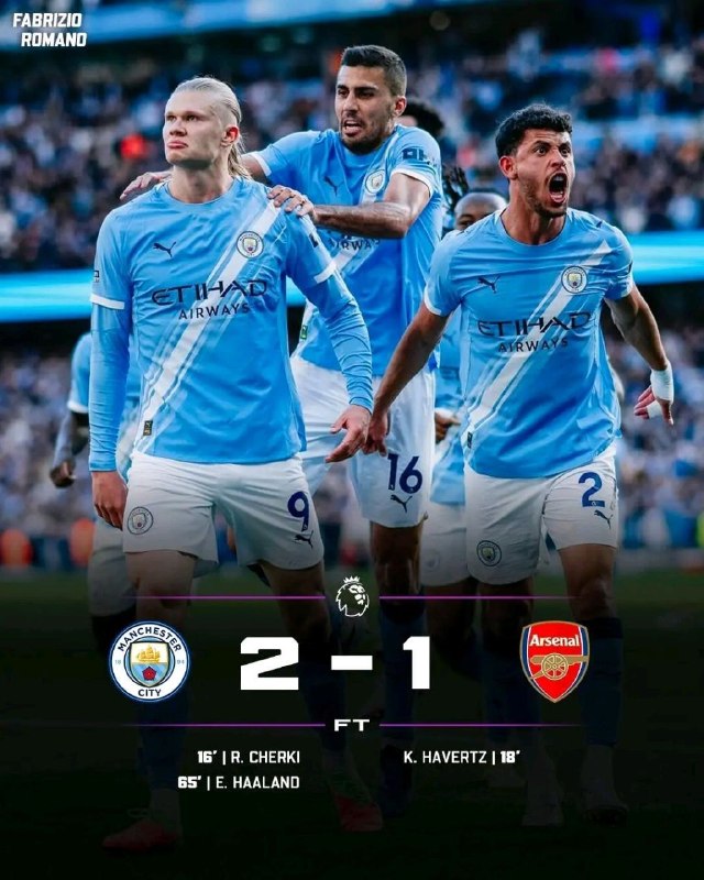 ማንቼስተር ሲቲ ቼሪኪ እና ሃላንድ ባስቆጠሯቸው ጎሎች 2 ለ1 አሸንፏል።