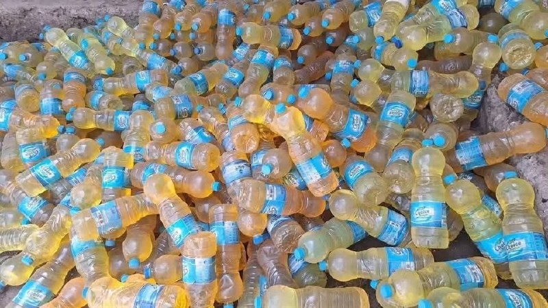 ከመግለጫው ጋር ተያይዘው የወጡት ምስሎች በመቶዎች የሚቆጠሩ ትናንሽ የውኃ መያዣ ፕላስቲኮች በቤንዚን ተሞልተው ያሳያሉ።